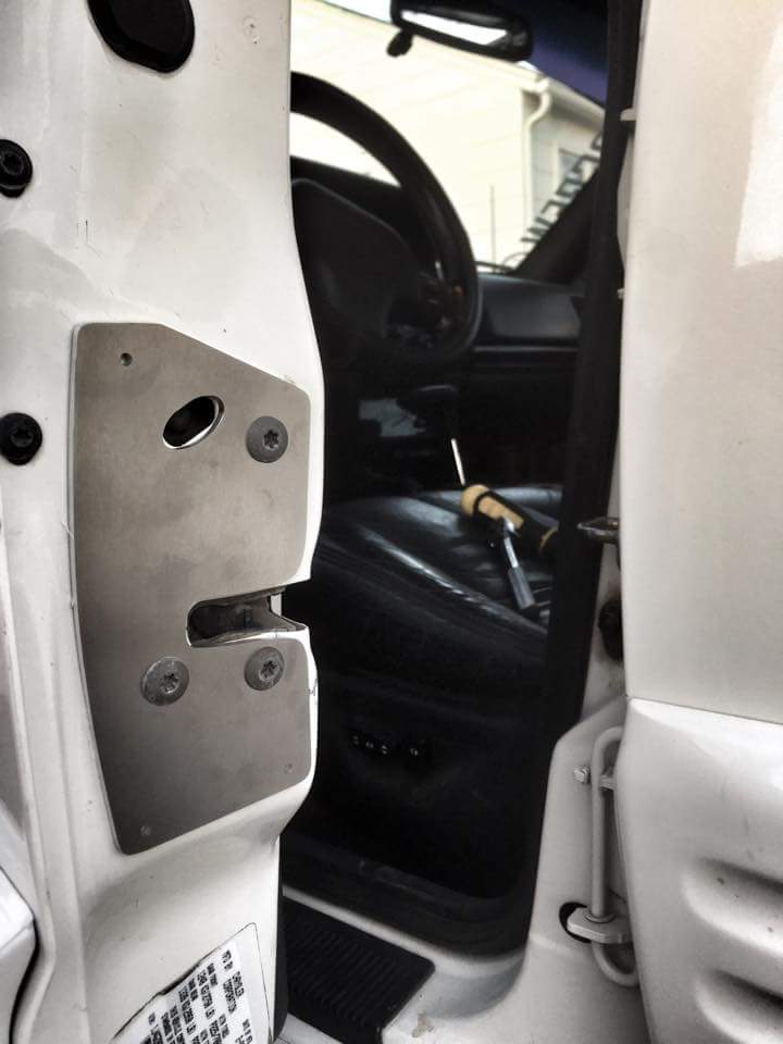 The plates we offer repair and reinforce the all too common cracks from worn door hinges with out welding or body work.